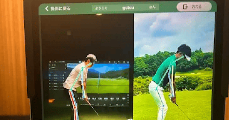 YouTubeで人気のてらゆー(Tera-You)プロらのスイングとAIを使った骨格分析(比較)が可能。てらゆープロらとスイングを比較してGAPの大きい箇所を色で示してくれるので一目で解ります。